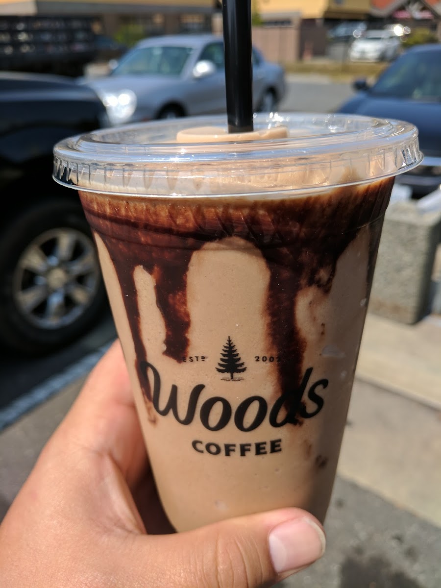 I love grabbing coffee at Woods coffee, anywhere I go, I know I’ll get a solid cup of coffee and milkshake, whatever it is, is always good. This place in particular is quite nice, plenty of seats and tables, a bit chilly inside but not a big deal. Girls serving were super nice and fast. I always come back to woods coffee!